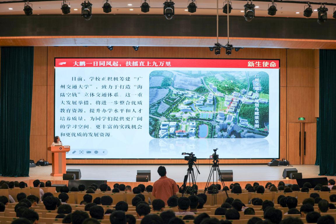 为勉励新“广航人”读懂广航院、融入广航院,坚定勇做海洋强国、交通强国建设者的使命担当,9月2日上午,学校党委书记陶韶菁以《鲲鹏展翅向海图强 凌云壮志科技报国》为题在黄埔校区郑和堂为2025级新生讲授“思政第一课”。在黄埔校区、琶洲校区的26个会场,4000余名新生同上一堂课,共同回顾新时代以来中国海洋与交通科技发展史以及广航院与国家时代同向同行的红色历史,赓续红色血脉、弘扬红色品格,擦亮精神底色、汲取奋进力量。活动由学校党委委员、副校长陈建平主持。